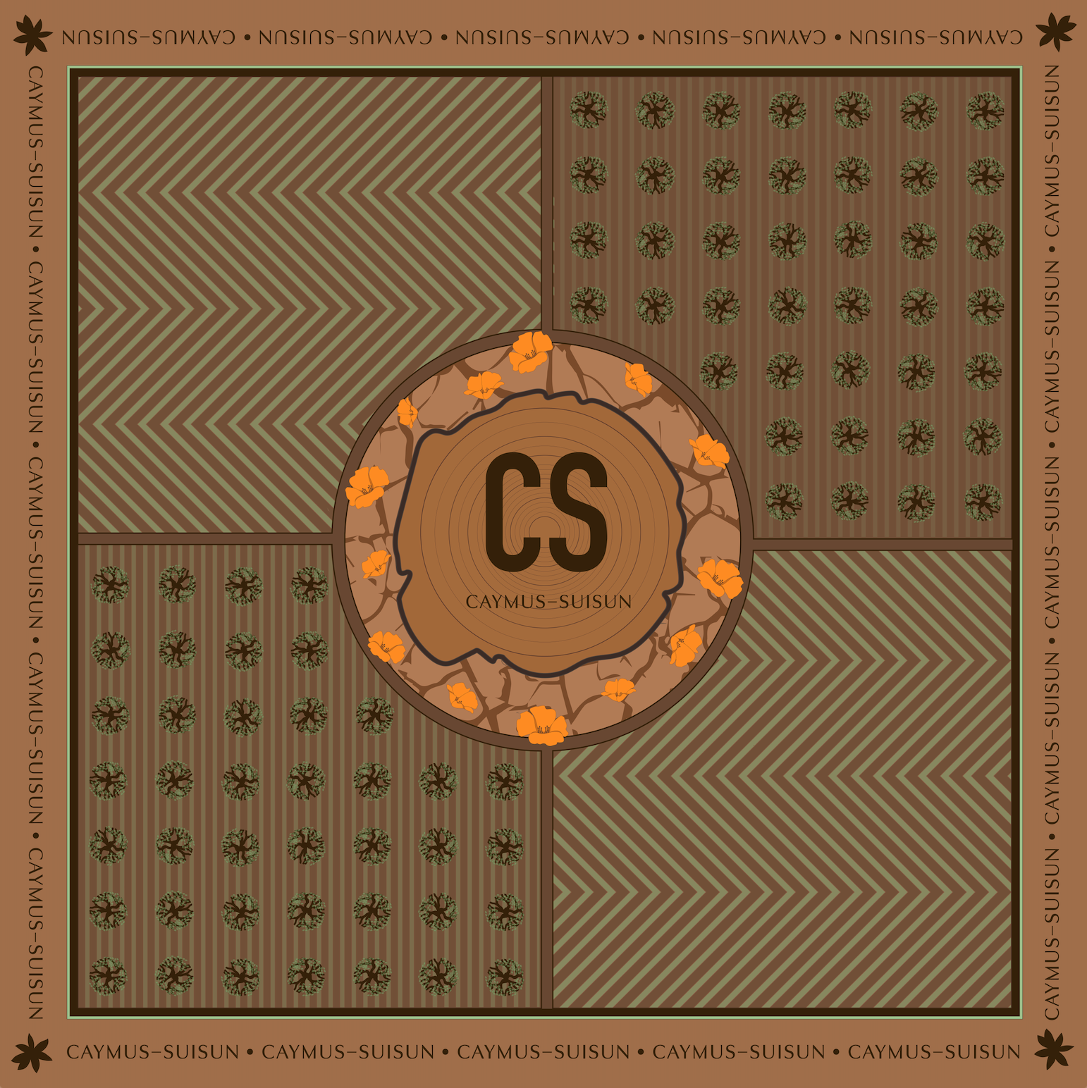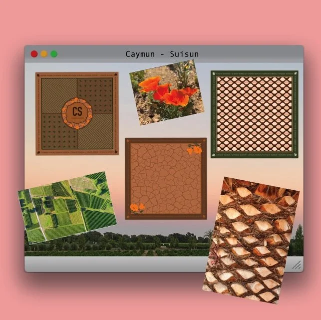 I was approached by the lead interior designer, Sarah Giesenhagen, who was overseeing the creative direction for Caymus-Suisun’s new tasting room in Fairfield, California. The scarves I designed were intended to encapsulate the various aspects of the winemaking process, as well as the unique soil conditions that contribute to Caymus-Suisun’s distinctive wines.